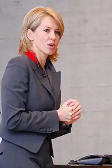 In 2001 she returned to SRF 1 as an announcer of the talkshow Zischtigsclub . In 2005, she filled in for Daniela Lager during her half-year maternity leave[1] on the current affairs show 10vor10. After the departure of longtime Club host Ueli Heiniger in 2006, she took over its editorial management, and in November 2011 she presented her last show for the Club. In early August 2011, she took over at "10vor10" as the successor of Susanne Wille.[2] On October 4, 2013, she presented the news for the last time at Schweizer Radio und Fernsehen.[3] Since November 1, 2013, she has been the editor-in-chief of SonntagsBlick.[4]