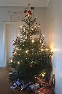 The Christmas tree is a custom that was imported from Germany in the 1880s. The former tradition of giving joke presents, often a log of wood, was replaced during the late-19th century and 20th century by Christmas gifts given out by the Christmas goat (Julbocken) or, especially later, Santa Claus (Jultomten).[5]