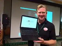In 2010, Google released the unbranded Cr-48 Chromebook in a pilot program.[23][24] The launch date for retail hardware featuring Chrome OS was delayed from late 2010[25] until the next year. On May 11, 2011, Google announced two Chromebooks from Acer and Samsung at Google I/O.[26][27] The Samsung model was released on June 15, 2011, but the Acer was delayed until mid-July.[28][29] In August 2011, Netflix announced official support for Chrome OS through its streaming service, allowing Chromebooks to watch streaming movies and TV shows via Netflix. At the time, other devices had to use Microsoft Silverlight to play videos from Netflix.[30] Later in that same month, Citrix released a client application for Chrome OS, allowing Chromebooks to access Windows applications and desktops remotely.[31] Dublin City University became the first educational institution in Europe to provide Chromebooks for its students when it announced an agreement with Google in September 2011.[32]