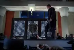 - The episode's bank robbery was presented as an homage to The Matrix.[1][2][3]