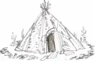 A chum (/tʃuːm/) is a temporary dwelling used by the nomadic Uralic (Nenets, Nganasans, Enets, Khanty, Mansi, Komi) reindeer herders of northwestern Siberia of Russia. The Evenks, Tungusic peoples, tribes, in Russia, Mongolia and China also use chums. They are also used by the southernmost reindeer herders, of the Todzha region of the Republic of Tyva and their cross-border relatives in northern Mongolia. It has a design similar to a Native American tipi but some versions are less vertical. It is very closely related to the Sami lavvu in construction, but is somewhat larger in size. Some chums can be up to thirty feet (ten meters) in diameter.[1][2]
