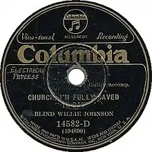 "Church, I'm Fully Saved To-Day" is a gospel blues song recorded by Blind Willie Johnson in 1930, with backing vocals by Willie B. Harris, sometimes identified as his first wife. It was released on Columbia 14582-D, as B-side to "The Soul of a Man".[1]