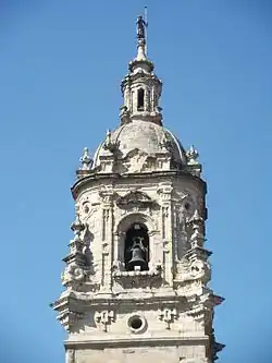In 1774 the construction of the Belfry Tower began by Gabriel de Capelastegui. This one had to substitute the former one. The tower has a quadrangular body that raises near the central roof. Above it we can find the belfry crowned by a dome and a lantern, and with auctions in the weathercock. It has a shining Baroque dieciochesco style, being one of the best examples of the whole Basque Country. The weathercock dates back of in 1775, concretely it was made on 7 December that year.