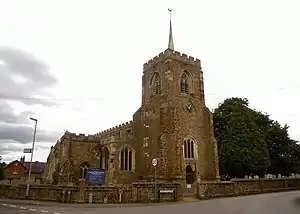 A church existed in the parish before 1120 but what can be seen today is no earlier than the 13th-century: this includes the South and North nave arcades, the North aisle and the chancel. St Mary's church is built in the Early English style with a square tower (now containing eight bells) from fieldstones and local ironstone. The South aisle and South chapel date to about 1300 while the North porch is also a 14th-century addition. Remodelling of the church in the 15th and 16th-centuries affected the entire building except for the nave arcades.[1][2][4]