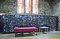 The distinctive glass screen at the rear of the church