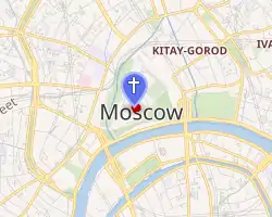 The church was built on the site of a previous church, built by Jonah Metropolitan of Moscow in 1451.[2] The name of the church, variously translated as the Church of the Virgin's Robe,[3] The Church of Laying Our Lady’s Holy Robe, The Church of the Veil or simply Church of the Deposition, is said to refer to a festival dating from the 5th century AD, celebrating when the robe of the Virgin Mary was taken from Palestine to Constantinople, where it protected the city from being conquered.[4] For example, tradition says that during the Rus'-Byzantine War of 860 the patriarch placed the Virgin's Robe into the sea, causing a storm that destroyed the invading Rus' ships.[5]