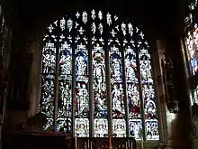 - Several large stained glass windows featuring major English and Biblical saints at the church's east and west ends