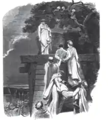 Davidson compares the seeresses to a report by Tacitus who wrote in Annals XXX, 30, that the Celts in Britain under Boudica used to "to drench their altars in the blood of prisoners and consult their god by means of human sacrifice".[34] The Roman general Suetonius Paulinus conquered the island and cut down the sacred grove on the island of Anglesey to stop the religious practices: