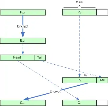 - Dn = Pn || Tail (En−1, B−M). Pad Pn with the low order bits from En−1.