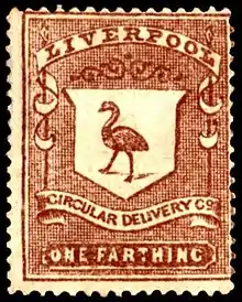 The first such company was the Edinburgh and Leith Circular Delivery Company set up by Robert Brydone in 1865.[1] Brydone undertook to deliver circulars within the boundaries of Edinburgh and Leith for one farthing each.[2] He also delivered parcels which were not covered by the Post Office's monopoly. Brydone, a printer by trade, was declared bankrupt in 1866 but moved to London to form the London Circular Delivery Company which merged with the Metropolitan Circular Delivery Company in 1867.[1]
