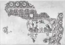 A brief description of the Circus of Carthage exists based on the mosaic found in Bardo National Museum in Tunis: "It is the only mosaic to show both the interior of the arena and the exterior façade, which has two arcades separated by a cornice. There also is an awning over the seats, which continue over the carceres, conveying more the appearance of an amphitheater than a circus. The two temple-like structures above the seating are novel, as well, and may be situated at the break and finish lines."[3][4]