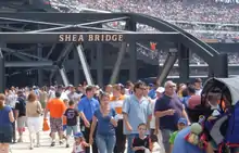 Citi Field features an overarching bridge motif in its architecture, as New York City is linked by 2,027 bridges and is reflected in the Mets logo, as the team is the symbolic bridge to the city's past National League teams, the New York Giants and the Brooklyn Dodgers.[31] In the outfield section of the ballpark, there is a pedestrian bridge named Shea Bridge that resembles the Hell Gate Bridge.[24]