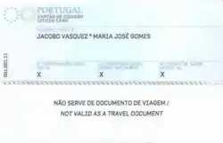 ![]() Reverse of a Cartão de Cidadão issued to a Portuguese citizen | |