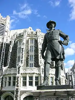 Like President Webster, the second president of the newly renamed City College was a West Point graduate. The second president, General Alexander S. Webb (1835-1911), assumed office in 1869, serving for almost the next three decades. One of the Union Army's heroes at Gettysburg, General Webb was the commander of the Philadelphia Brigade. In 1891, while still president of the City College, he was awarded the Congressional Medal of Honor for heroism at Gettysburg. A full-length statue of Webb, in full military uniform, stands in his honor at the heart of the campus.[28]
