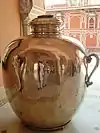 There are two huge sterling silver vessels of 1.6 metres (5.2 ft) height and each with capacity of 4000 litres and weighing 340 kilograms (750 lb), on display here. They were made from 14,000 melted silver coins without soldering. They hold the Guinness World Record as the world's largest sterling silver vessels.[12] These vessels were specially commissioned by Maharaja Sawai Madho Singh II to carry the water of the Ganges to drink on his trip to England in 1902 (for Edward VII's coronation). Hence, the vessels are named as Gangajalis (Ganges-water urns).[4][5][10][13][14]