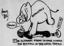 The first City Series game between the American League Athletics and Phillies was played on April 9, 1903 at the Phillies ballpark. The Phillies won 6-5 in ten innings.[2] The Phillies and A's would play both a spring and fall series in 1903. The Phillies took four of five games in the spring. With Baker Bowl in disrepair following the collapse of a section of bleachers on August 8, 1903, all of the post-season games were played at Columbia Park. The A's won four of the seven games.[3]