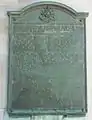 The central archway is about 8 m (26 ft) high and 5 m (16 ft) wide, with the city's coat of arms worked into the metalwork lunette above the gates. The smaller side arches are about 6 m (20 ft) high and 2.5 m (8.2 ft) wide. Carved into the stone above the side arches are the dates "1914-1918" (left) and "1939-1945" (right). The frieze above the central arch is inscribed with the Latin motto from the City's coat of arms, "VIVIT POST FUNERA VIRTUS", which may be loosely translated as "virtue outlives death", above which there is a carving of the city's coat of arms on the parapet. The interior walls of the archway have bronze plaques with inscriptions, including one inscribed with the words of tribute that the French Marshal Foch gave to the Sherwood Foresters in 1918.