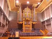 The school's sports facilities include a multi-purpose indoor sports hall, a fencing salle, three squash courts, a 25-metre swimming pool, a conditioning room, a rooftop AstroTurf football pitch and grass playing fields and athletics tracks at Grove Park, Lewisham.[34] Music facilities include three ensemble rooms, ten rehearsal rooms and a music technology lab.[35] Other facilities include the Great Hall, a sixth form common room, a bookshop, a library, an archive room, three ICT labs, facilities for the Combined Cadet Force (including a rifle range), a drama studio, two playgrounds and a drama theatre. The Great Hall houses a Walker organ which was moved from the previous school building and put into a new casing. The organ has 3 manual departments, 61 notes and a pedal department with 32 notes as well as 43 stops, 4 tremulants and 6 couplers.[36][37] The drama theatre (Winterflood Theatre) was rebuilt in 2009 at a value of £1.3 million. The project was jointly funded by City entrepreneur Brian Winterflood and the City of London Corporation. The new theatre was designed by architectural firm RHWL and built by Wilmott Dixon Construction.[38][39][40]