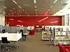 The design is not one that is found in a 'traditional' Library and features the use of vibrant colours, banks of music listening stations, Xbox game consoles, flat screen televisions displaying music and news channels and a see through staff work area.