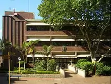 The name "Rockdale" for the West Botany area was first suggested in 1878, and that name gained more credence when the local railway station on the new Illawarra rail line, opened on 15 October 1884, was also given the name Rockdale.[17][18] However, by the time the neighbouring Boroughs of Botany and North Botany (Mascot from 1911) were proclaimed on 29 March 1888, it was clear that a name change was desirable. On 17 May 1888 the Parliament of New South Wales passed the Rockdale Municipality Naming Act (No.33, 1888), and West Botany became the "Municipal District of Rockdale".[19] On 31 December 1900, a fourth ward was added, Hopetoun Ward, named after the soon-to-be first Governor-General of Australia, bringing the number of aldermen to twelve.[20] The 1887 Town Hall was replaced by the current Rockdale Town Hall in 1940, and was designed by Rockdale architect Douglas Gardiner.[21]