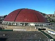 America's first high school basketball All-Star game, The Dapper Dan Roundball Classic was held at the arena annually between 1965 and 1992.[23] The men's basketball programs of both of the city's NCAA Division I institutions, the University of Pittsburgh and Duquesne University, frequently used it either as a primary or secondary home court, and the last basketball game played at the arena was the two schools' annual rivalry game in 2009.[24] Among the two schools, Duquesne made the most extensive use of the arena, using it as their home from 1964 until 1988.[25] From 1984 to 2002, Pitt used the arena for select games against popular opponents.