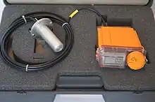 The British "Radiac Survey Meter No. 2"[5] dates from 1953–1956, and required now-obsolete 15 and 30 volt high voltage batteries and a 1.5 volt standard cell, the latter used to power the valve heater filaments and meter illumination bulb). There was also a training unit,[6] which measured 0–300 mR/h, and ran on four 30 volt batteries plus one 1.5V cell for the filaments. This meter used a large Geiger–Müller tube, as opposed to the ionisation chamber of the RSM No. 2.