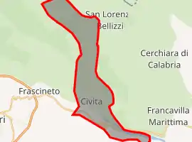 Civita (Arbërisht: Çifti) is a hilltown and comune in the province of Cosenza in the Calabria region of southern Italy. Facing the Ionian Sea, it is part of the Pollino National Park.