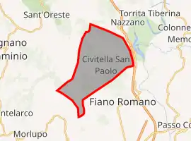 The municipal territory of Civitella San Paolo borders the municipalities of Capena to the south, Fiano Romano to the east, Sant'Oreste and Rignano Flaminio to the west, and Ponzano Romano and Nazzano to the north. It is about forty-five kilometers from Rome, ten from Capena, and seven from Fiano Romano.