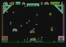 Claim Jumper is a 1982 video game written by Gray Chang for the Atari 8-bit family and published by Synapse Software.[1] It is primarily designed as a two-player competitive game, but includes a separate shoot 'em up mode for either one or two players.[2]