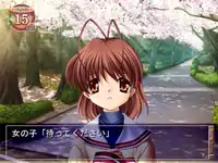 When first playing the game, the scenarios for all five heroines and additional smaller scenarios are available in what is called the School Life story arc. When the player completes a character's scenario, he or she receives an orb of light. When eight of these lights are obtained, the game's second story arc, called After Story, is made available. One of the lights disappears during School Life, but reappears in After Story.[1] To view the true ending of Clannad, all 13 lights must be obtained. Originally, the lights were meant to be items that players could use in the game, but since this increased the game's complexity, and detracted from the storyline, the function of the lights was simplified and made less intrusive.[2]