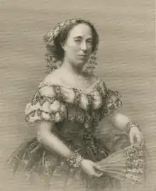 Clara Anastasia Novello (10 June 1818 – 12 March 1908) was an acclaimed soprano, the fourth daughter of Vincent Novello, a musician and music publisher, and his wife, Mary Sabilla Hehl. Her acclaimed soprano and pure style made her one of the greatest vocalists, alike in opera, oratorio and on the concert stage, from 1833 onwards. In 1843 she married Count Gigliucci, and retired in 1861. Charles Lamb wrote a poem ("To Clara N.") in her praise.[1]