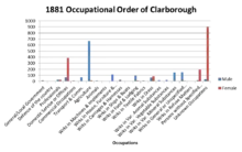 During the period of the late 19th century, the 1881 Census provided information on the occupation classification of the inhabitants of Clarborough. This data helps to give an insight of the history of the area. The central field of employment for males during this era was in agriculture, with 667 males working within this field. Although a great number (145) were employed within the field entitled 'Wrks in Var. Mineral Substances', this could be explained through the location of Clarborough being in the Midlands, and during this time miners were in great demand, due to the volume of demand.[20] The number of males employed within the 'professionals' field was significantly lower, standing at only 28.