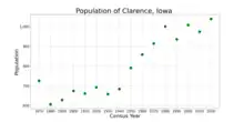 Clarence is a city in Cedar County, Iowa, United States. The population was 1,039 at the time of the 2020 census.[2]