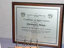 Moore was an amateur radio operator with call signs of W9LZX and HC1JB.[1] He developed and patented the cubical quad antenna, patented as US 2,537,191.[3].