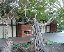 Mayhew's influential Manor House was designed in 1937 for Marjorie and Harold V. Manor. Manor was a San Francisco native who married Marjorie W. Arnold in 1908.[3] He joined three different garden clubs including the California Horticultural Society.[4] The house that Mayhew designed for the Manors was basically a ranch house in structure, but light and airy with floor-to-ceiling windows and extensive skylights. It received notice across the country for its clean, light, asymmetrical lines and its embrace of both indoor and outdoor spaces. Its U-shaped plan enclosed a central lawn, and cost US$14,500 to build in 1938.[5] A series of publications made mention of the design—it appeared in House and Garden, Architect and Engineer,[6][7] Progressive Architecture,[8] Modern House in America,[9] Tomorrow's House[10] and If You Want to Build a House.[11] In 1974, architectural historian David Gebhard wrote of the design: "...California’s ability to wed indoors and outdoors was beautifully captured in the solarium, with its glass roof, sliding glass walls, and the adjacent sliding glass walls of the living room. This house was a realization of flexible indoor/outdoor space, so often discussed by the exponents of modernism but never achieved in such a lyric fashion."[2] Mayhew was quoted in Architectural Forum in 1939 as saying that "the house has a Japanese character in both plan and elevation. Although I did not copy any Japanese details, I did copy the underlying principle."[2]