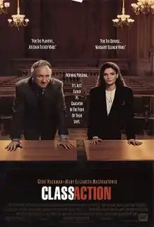 Class Action is a 1991 American legal drama film directed by Michael Apted. Gene Hackman and Mary Elizabeth Mastrantonio star; Larry Fishburne, Colin Friels, Fred Dalton Thompson, and Donald Moffat are also featured. The film was entered into the 17th Moscow International Film Festival.[2]