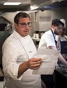 In 2010, Bosi took over the Wimbledon-based pub The Fox and Grape alongside his brother Cedrick. The duo reopened it as a gastropub whilst retaining the original name.[6] The brothers had previously run a pub together in Yarpole, Herefordshire, until 2010.[7][8] In 2016, Bosi took over The Swan Inn between Esher and Claygate. After extensive refurbishment the Inn reopened as a gastropub with luxurious rooms in May 2016.[9] In July 2018, Bosi won the coveted Chef Award at The Caterer's The Catey Awards. He appeared on BBC One's Saturday Kitchen in March 2012.[10] Later in the same year Bosi was one of a number of chefs to work at "The Cube", a pop up restaurant sat on top of London's South Bank Centre.[11]