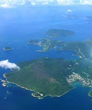 Po Keng Teng (centre) and Steep Island (right) off the coast and High Junk Peak can be seen on far left background