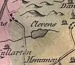 Ainslie's map of 1821 is the last map to show Clevens Loch and this indicates that its drainage took place in the early 19th century. The outflow was via the Fullarton estate and into the sea at Newburn. Roy's map of 1747 shows a Cleavans Loch.[7]