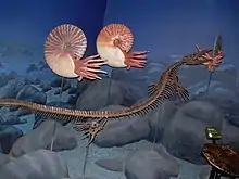 It was one of the earliest hydropedal[note 1] mosasaurs, representing one of the first properly marine predatory forms alongside other early hydropedal genera like Tylosaurus and Platecarpus.[1] It was likely an agile swimmer that preyed upon cephalopods, fish and other small vertebrates in shallow water.