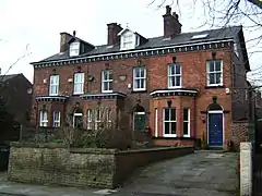 The area is served by two Anglican churches. St. Anne's has stood on Manchester Road since its completion in 1874. St. Thomas's on Delamere Avenue, off Rake Lane, was built in 1974 to replace an earlier building on Rake Lane opposite the junction with Whitehead Road. The earlier church was built in 1898 as a mission church to serve a small community of outlying farms and cottages. Composed of corrugated metal sheeting, it became known affectionately as “Th'owd Tin Mission” rather than St. Thomas's.