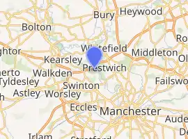 ![]() The aqueduct spanning the Irwell, as viewed from the Clifton Viaduct downstream | |