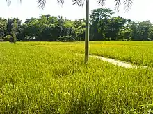 As agricultural production is heavily related with temperature and rainfall, the current change in weather conditions is creating negative impact on crop yielding and the total area of arable land has been decreased. According to a report published by the Ministry of Environment and Forests - GoB, 1 degree Celsius increase in maximum temperature at vegetative, reproductive and ripening stages there was a decrease in Aman rice production by 2.94, 53.06 and 17.28 tons respectively.[24] Another major threat deriving from this factor is water salinity which directly affects rice production especially in the coastal part of Bangladesh. The same report state that, the country will lose 12-16% of its land if the sea level rises by 1 meter. These challenges lead to food scarcity and insecurity for the huge populace of the country. There are several adaptation measures which are practised to cope up with the abnormal behaviour of climate such as: resilient varieties of crops, diversification, change in cropping pattern, mixed cropping, improved irrigation facility, adopting soil conservation, agroforestry and so on.[25]