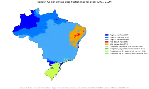 Predicted Köppen climate classification map for Brazil for 2071–2100