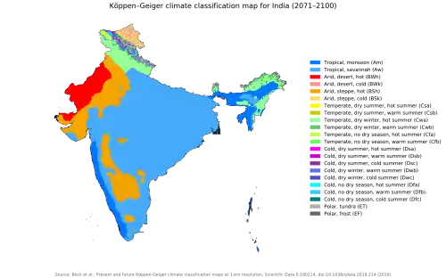 Predicted Köppen climate classification map for India for 2071–2100