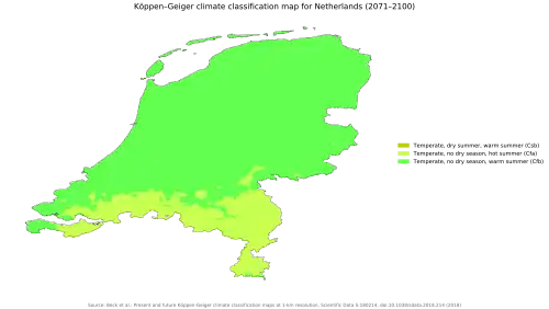 Climate change in the Netherlands is already affecting the country. The average temperature in the Netherlands rose by almost 2 degrees Celsius from 1906 to 2017.[1]