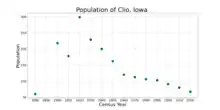 Clio is a city in Wayne County, Iowa, United States. The population was 67 at the 2020 census.[2]