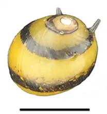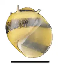 Abapertural view of Clithon diadema shell. Scale bar is 10 mm.