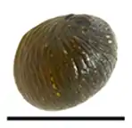 | Abapertural view of Clithon lentiginosum shell. Scale bar is 10 mm. | |