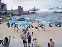 - Riga, Andy (March 2, 2012). "Montreal's Old Port beach: sand, boardwalk, umbrellas – but no swimming and it won't be free". Montreal Gazette. Archived from the original on August 26, 2013. Retrieved March 2, 2012.